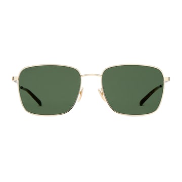 品牌眼镜系列秉承经典,以甄选材质、精湛工艺与清新色调焕新演绎GG、织带、竹节、马衔扣及马术元素等品牌经典图案。这款方形镜框太阳眼镜采用贴合设计,镜圈以金色调金属匠心打造,镜腿处缀饰织带细节。