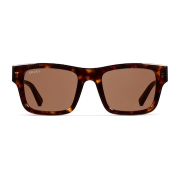 品牌眼镜系列秉承经典,以甄选材质、精湛工艺与清新色调焕新演绎GG、织带、竹节、马衔扣及马术元素等品牌经典图案。这款方形镜框太阳眼镜采用贴合设计,镜圈以光泽感深棕色玳瑁醋纤打造,镜腿处匠心缀饰GG醋纤细节。