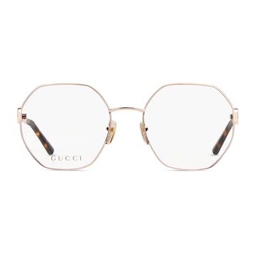 品牌眼镜系列秉承经典,以甄选材质、精湛工艺与清新色调焕新演绎GG、织带、竹节、马衔扣及马术元素等品牌经典图案。这款方形镜框甄选玫瑰金色调金属打造,镜腿匠心缀饰互扣式双G细节。