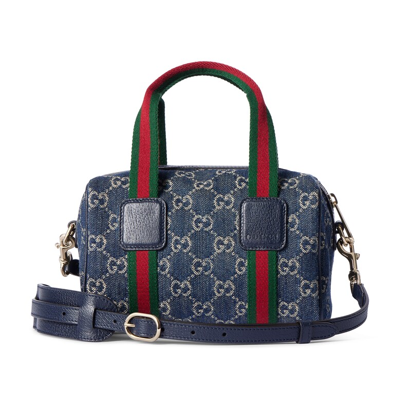 品牌甄选GG迷你手袋灵感源自Gucci标志性旅行包的造型风格。这款手袋采用丹宁面料匠心打造,配有条纹织带提手与可拆卸肩带,焕新演绎品牌经典元素,致敬品牌在旅行箱包领域的悠久传承。