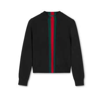 2026春夏系列全新上市。这款单品出自La Famiglia系列,以独特个性和鲜明美学态度焕新诠释品牌标识。这款毛衣甄选精细针织羊毛打造,精心缀饰织带嵌花。
