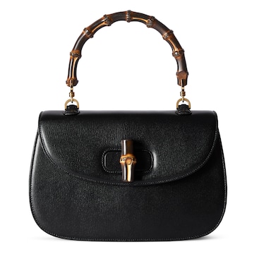 2026春夏系列全新上市。这款 Gucci Bamboo 1947系列手袋在《La Famiglia》系列的 "Gallerista" 造型中出现。全新包袋呈现轻盈设计,结构采用纤细侧围和全新开合饰扣,可在两个档位实现卡扣开合。包身甄选柔软粒面皮革,经手工精心做旧处理,呈现富有岁月质感的复古风格。