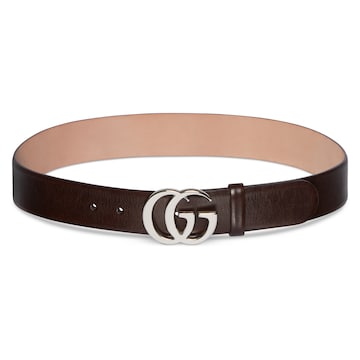 2026春夏系列全新上市。男士腰带以简约利落的扁平造型焕新演绎品牌标志性双G搭扣元素。这款腰带甄选深棕色皮革打造,匠心融蕴银色调配件。