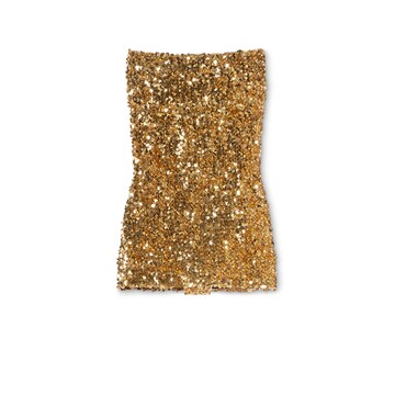 2026春夏系列全新上市。这款单品是La Famiglia“La Bomba”造型的一部分,以鲜明个性与美学态度诠释品牌设计元素。这款连体裤以金色刺绣亮片弹性面料呈现。