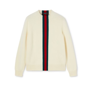 隆重推出2026春夏系列。这款款式灵感源自La Famiglia的“Ragazzo della Porta Accanto”造型。该系列通过独特的个性和独特的美学态度重新诠释品牌经典元素。这款毛衣以精细针织羊毛打造,缀饰Web嵌花。