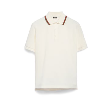 Generation Gucci 系列深入探索品牌档案代码,将不同世代的设计融合于一体,谱写出独特的美学篇章。现代化的织带元素点缀精选成衣单品,凸显高级质感和当代细节。这款Polo衫由棉质针织珠地面料精制而成,织带滚边领设计令整款设计更添魅力。