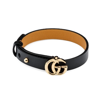 Generation Gucci古驰世代系列深入探索品牌的典藏元素,将不同世代的设计融合为统一的美学叙事。双 G 图案装饰在精致的皮革手镯上。