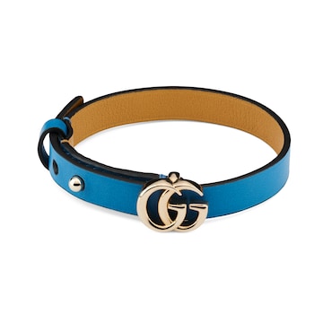 Generation Gucci古驰世代系列深入探索品牌的典藏元素,将不同世代的设计融合为统一的美学叙事。双 G 图案装饰在精致的皮革手镯上。