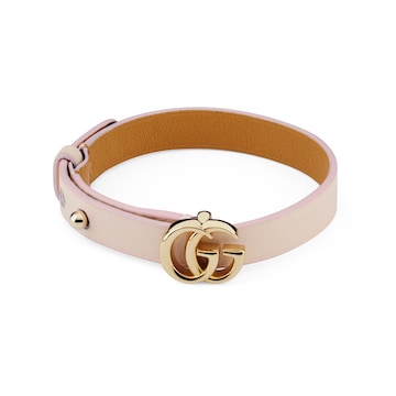 Generation Gucci 系列深入探索品牌的典藏元素,将不同世代的设计融合成一种美学叙事。双 G 图案在精致皮革手镯上焕新登场。