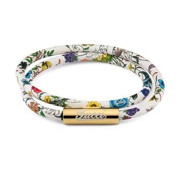 Generation Gucci 系列深入探索品牌典藏元素,将不同世代的设计融合成一种美学叙事。Flora花卉图案在精致皮革手链上焕新呈现。