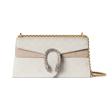 Generation Gucci古驰世代系列深入探索品牌的典藏元素,将不同世代的设计融合为统一的美学叙事。Dionysus系列采用柔和的角落设计和双色金属配件。标志性双虎头和新款链条肩带的金属 系配件为每种款式变化增添独特魅力。