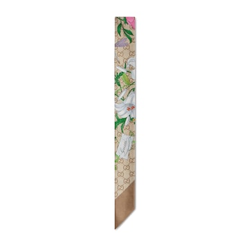 Generation Gucci 深入探索品牌的典藏元素,将不同世代的设计融合成一种美学叙事。这款丝带全面印有Gucci Flora印花,并配有同色系饰边。